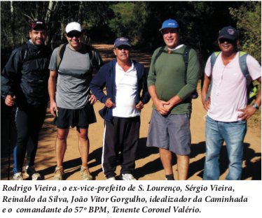 Outro detalhe. As prefeituras locais participaram da Caminhada. Além de São Lourenço que sempre apoiou a peregrinação, Soledade de Minas, Caxambu e Baependi também ajudaram na infraestrutura de apoio, sinalizando o caminho e melhorando as estradas. De quilômetro em quilômetro era possível ver barracas com enfermeiras da Microtec e atiradores do Tiro de Guerra 04- 024 de São Lourenço, dando todo o suporte ao peregrino. A pé, de bicicleta ou a cavalo os peregrinos saíam em grupos familiares ou de amigos. Não importava como ir, o que importava mesmo era chegar a Baependi e pressentir o que seria a grande festa de beatificação de Nhá Chica, dia 4 de maio.