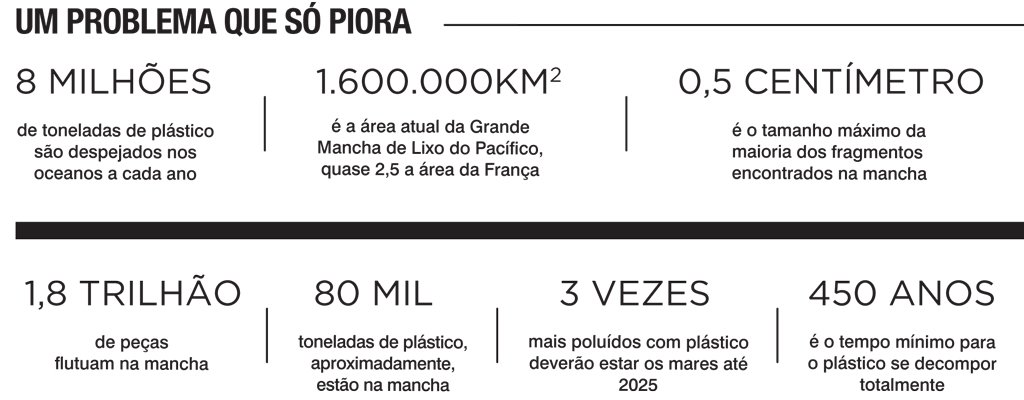 O mais grave é que a situação tende a piorar. Um relatório recente, divulgado pelo governo britânico, concluiu que até 2025 os oceanos do planeta estarão três vezes mais poluídos com plástico. Outro estudo, tornado público em 2016 no Fórum Econômico Mundial de Davos, afirmou que até 2050 os mares da Terra terão mais pedaços desse produto do que peixes. São materiais que levam pelo menos 450 anos para serem totalmente decompostos.