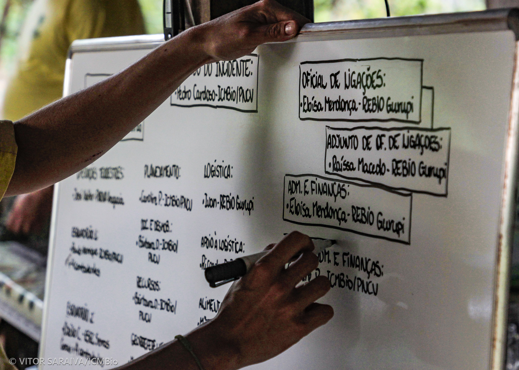 O Instituto Chico Mendes montou um Posto de Comando para coordenar as ações e mobilizar equipes de outros estados para combater o fogo a leste da UC.