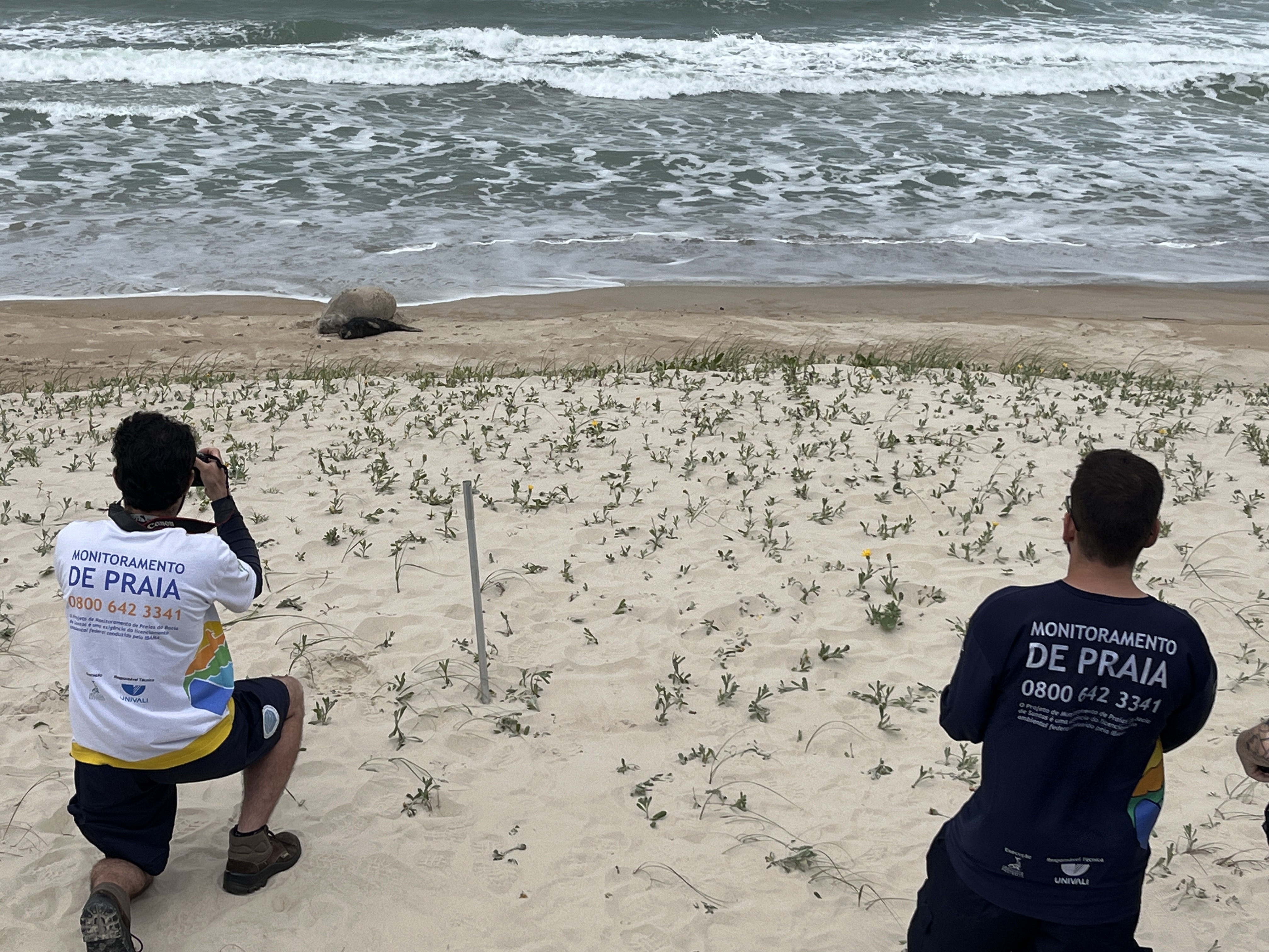 A fêmea de elefante-marinho e seu filhote recém-nascido seguem sob monitoramento na praia do Siriú, em Garopaba (SC). Desde o nascimento registrado no dia 11 de outubro, equipes do Instituto Australis e LabZoo/Udesc que executam o trecho 1 e 2 do Projeto de Monitoramento de Praias (PMP-BS) vêm avaliando diariamente o estado de saúde da mãe e do filhote.
