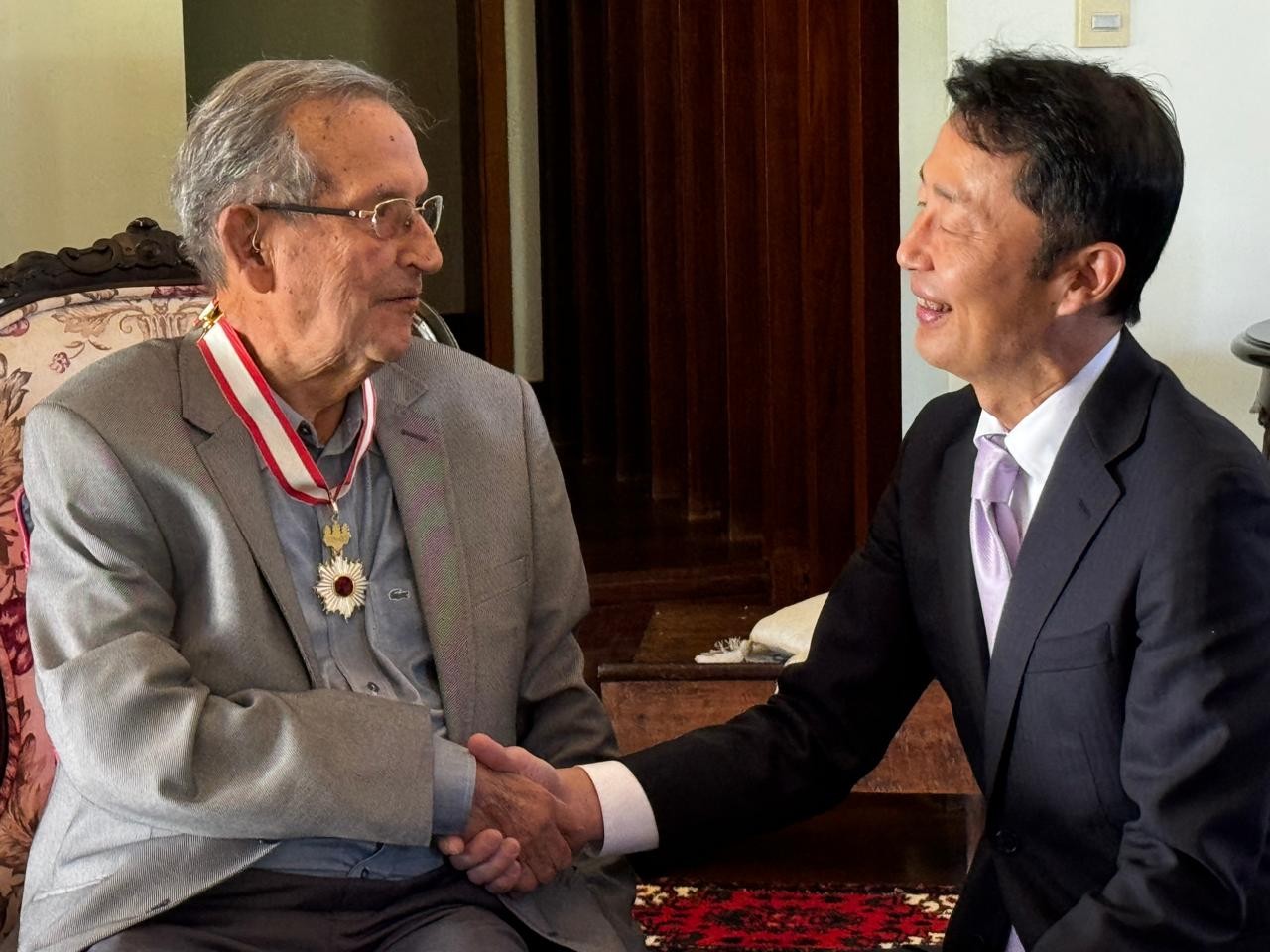 Eliseu Alves recebe a comenda Ordem do Sol Nascente, dada pelo Imperador do Japão, entregue pessoalmente pelo embaixador Teiji Hayashi. A parceria entre a Embrapa e a JICA [Agência de Cooperação Internacional do Japão] resultou na produção de alimentos no Cerrado brasileiro e viabilizou o acesso de produtos agropecuários em quantidade qualidade à população do Brasil e do Japão.