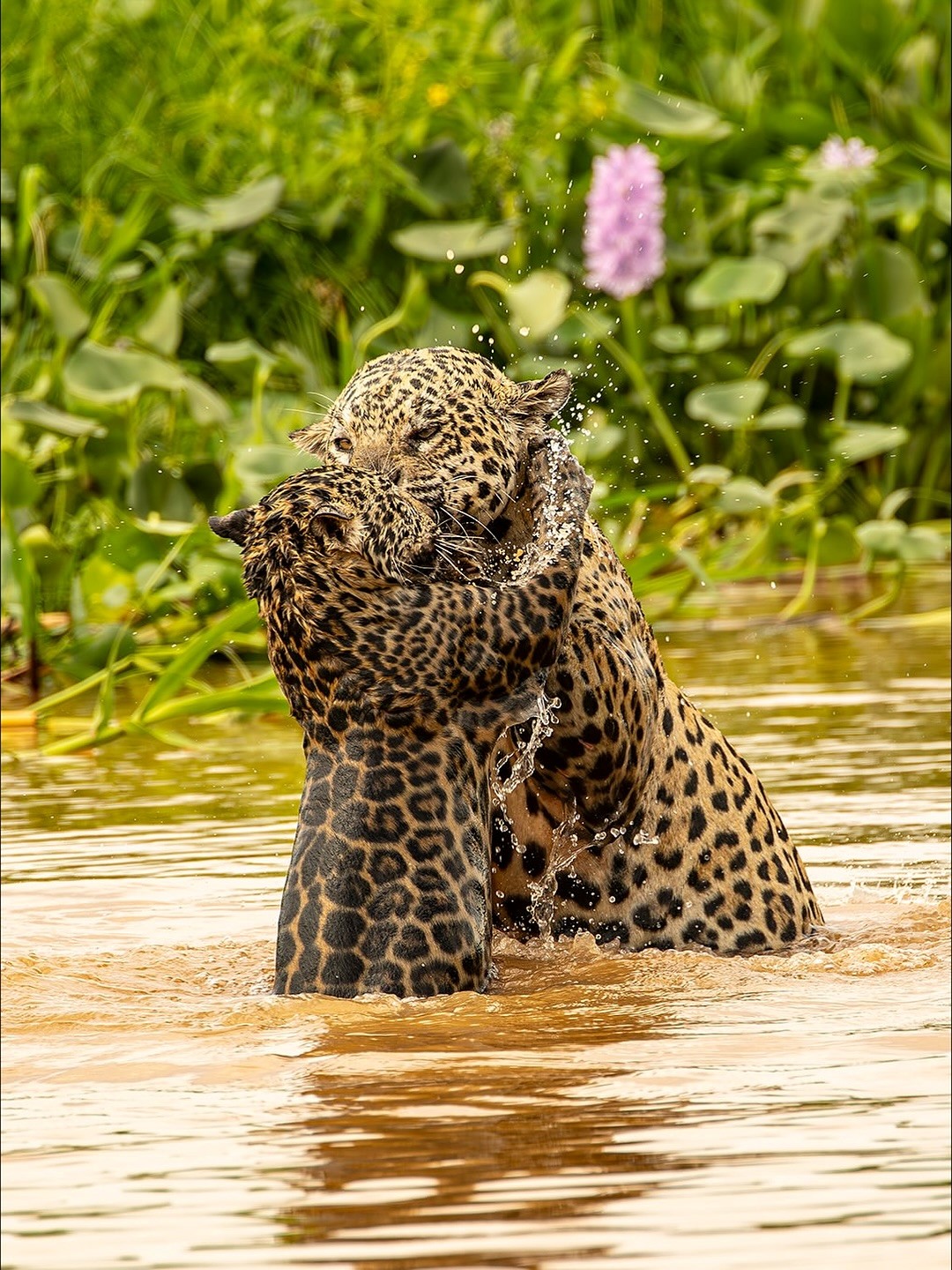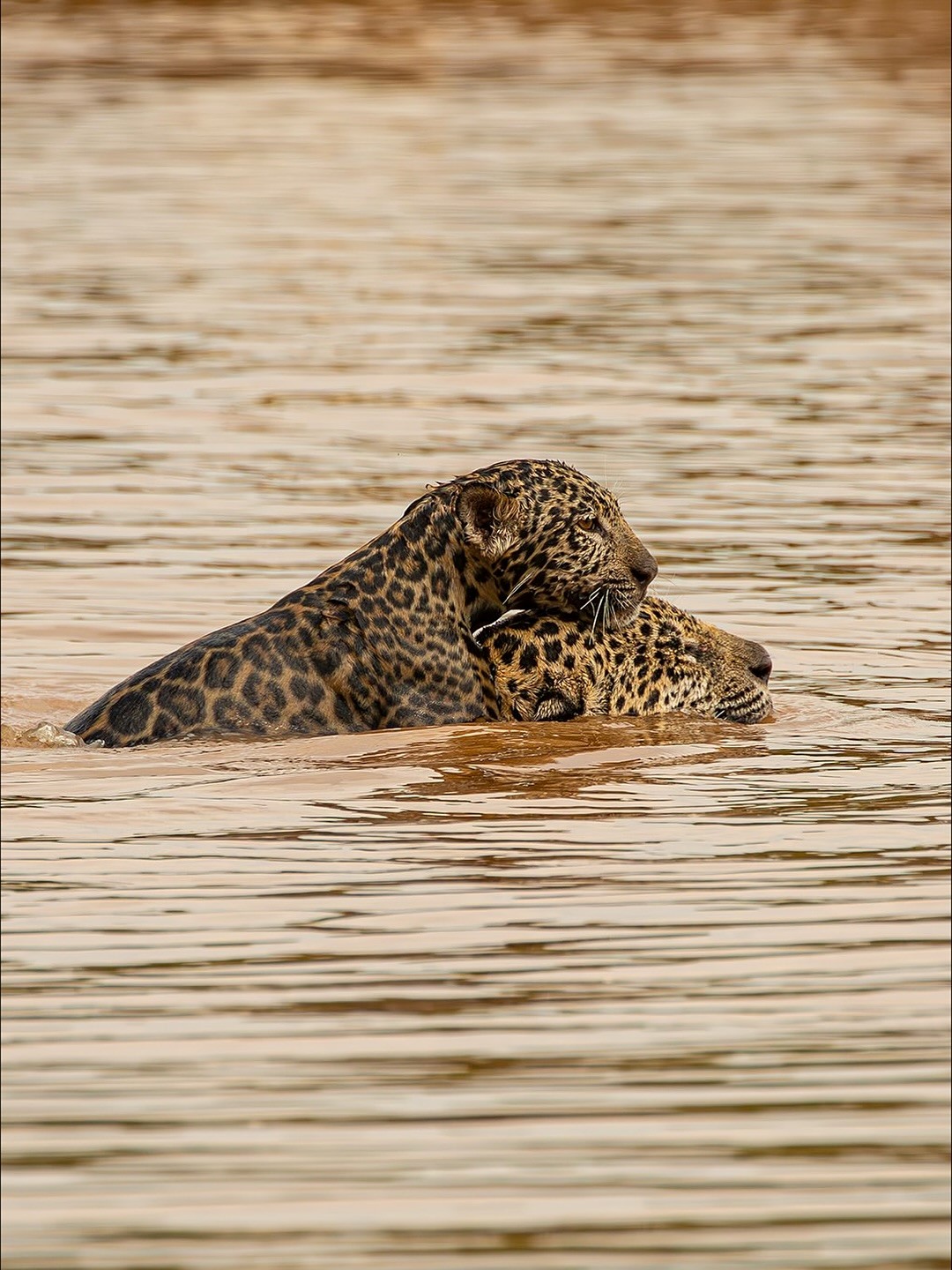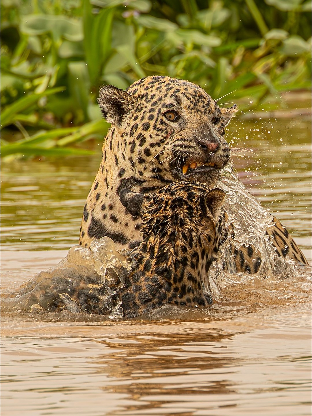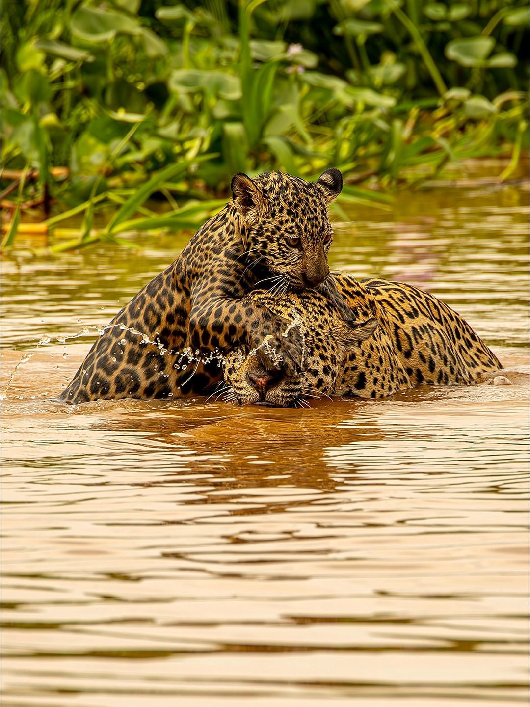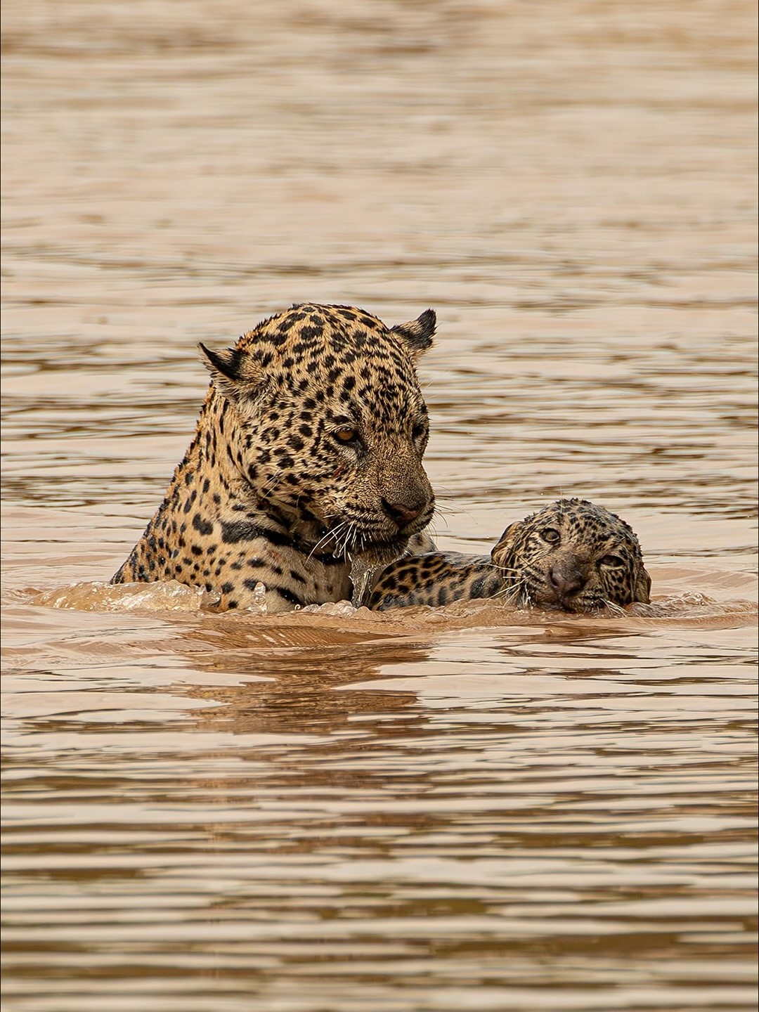 O Pantanal mato-grossense, em Porto Jofre, está o coração desse ecossistema fantástico que cobre grande parte do Brasil, Bolívia e Paraguai. Porto Jofre está a cerca de 100 km de Cuiabá. E é ali que o fotógrafo Thomas Thibaud e também guia de turismo ( @tomasthibaud ) registrou um momento raro e emocionante: uma onça-pintada ensinando seu filhote a nadar.