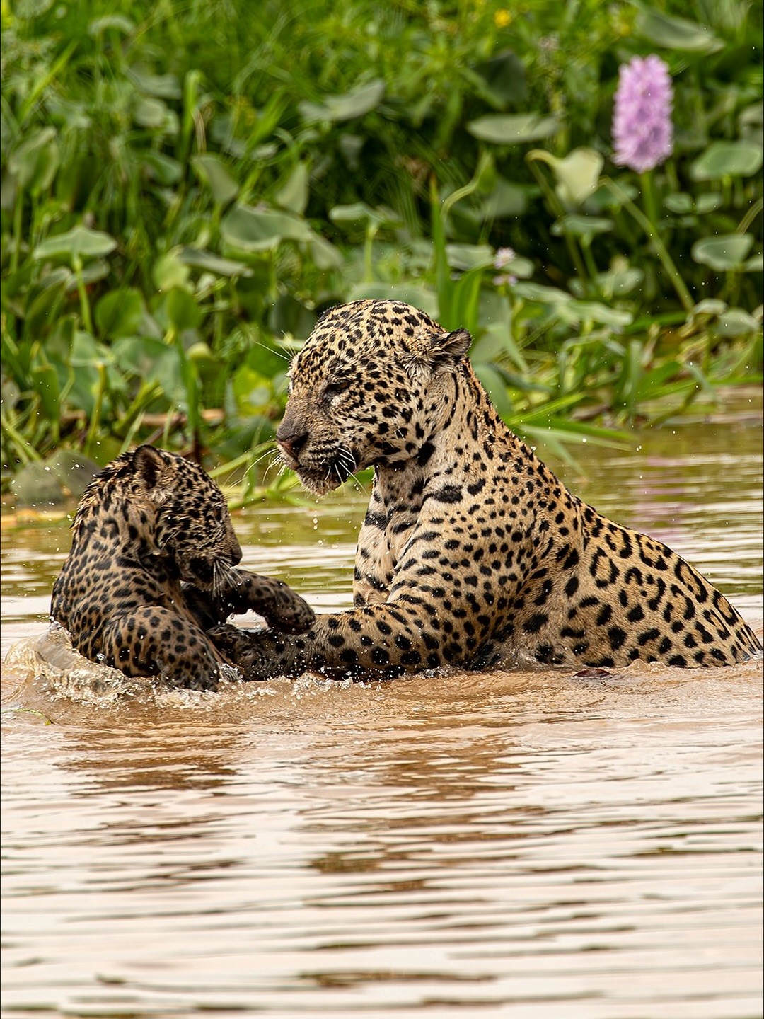 QUANDO UMA ONÇA PANTANEIRA ENSINA O FILHOTE NADAR
