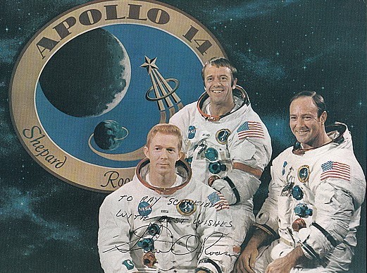 Apollo 14: as árvores da lua e os cosmonautas Suart Roosa, Alan Shepard e Edgar Mitchel (foto: NASA)