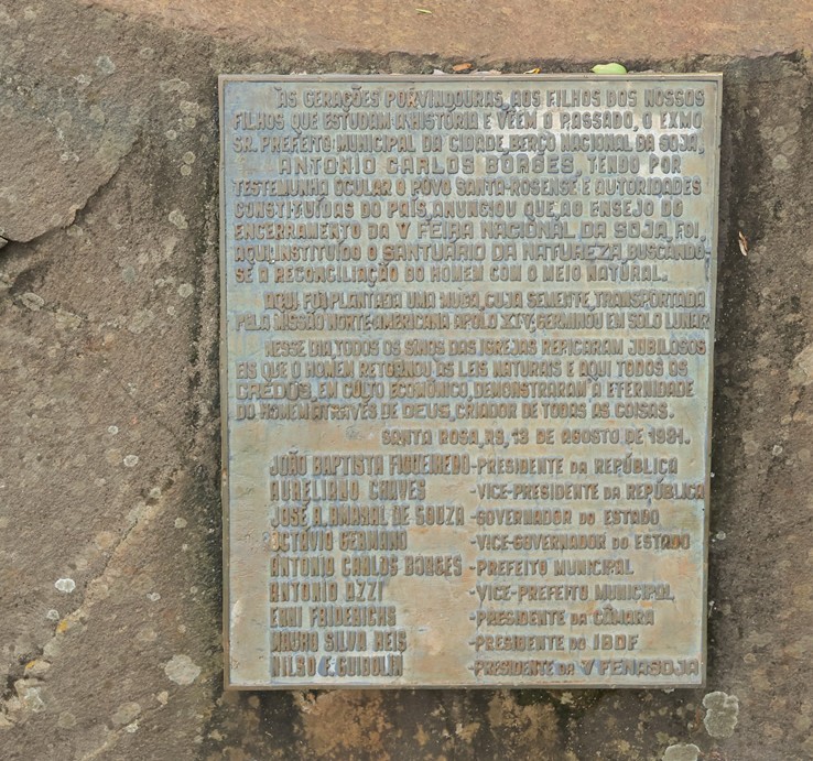 Placa que lembra o plantio da Árvore da Lua, em Santa Rosa (RS) em 13 de agosto de 1981, com a presença do presidente João Baptista Figueiredo.