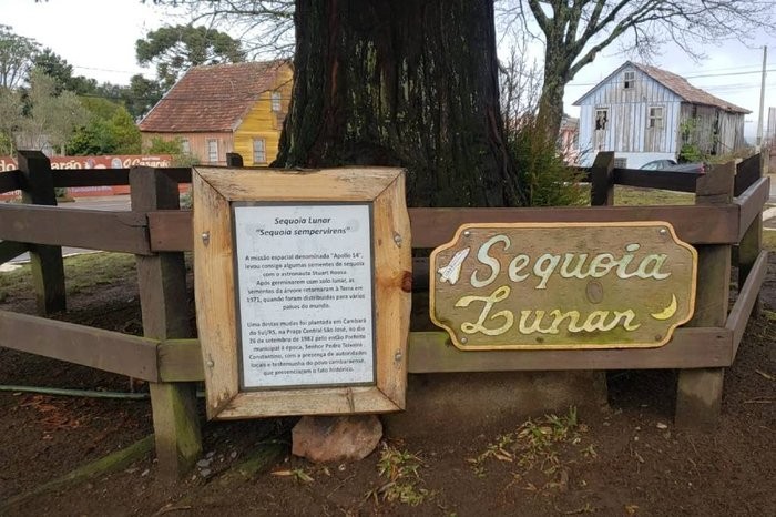 A sequoia plantada em Cambará do Sul, em 1982, entre dois cambarás, na Praça São José, consta na lista da NASA.