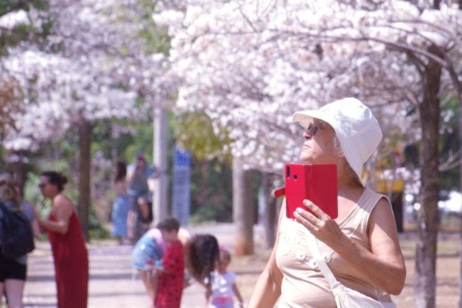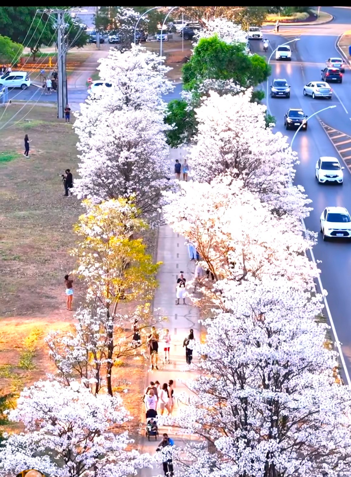 Euforia entre os moradores da 211 Norte, em Brasília, com os Ipês-brancos (Foto: Ed Alves/CB/DA.Press)