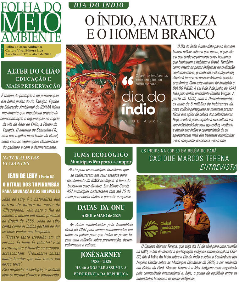 Folha do Meio Ambiente – Edições de 2025 Janeirro de 2025 - Edição 370 Fevereiro de 2025 - Edição 371 Março de 2025 - Edição 372 Abril de 2025 - Edição 373 Maio de 2025 - Edição 374 Junho de 2025 - Edição 375 Julho de 2025 - Edição 376 Agosto de 2025 - Edição 377 Setembro de 2025 - Edição 378 Outubro de 2025 - Edição 379 Novembro de 2025 - Edição 380 Dezembro de 2025 - Edição 381