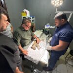 O animal que tem aproximadamente quatro meses foi encontrado ferido e desidratado