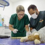 Tamanduá em estado grave e jabuti em reabilitação estão entre os atendidos; equipe foi capacitada para utilizar tratamento com pele de tilápia